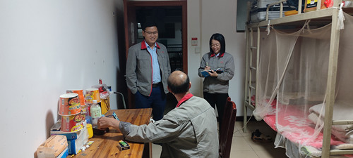 為進一步加強對職工的關心關懷,陳達偉走訪員工宿舍,與職工面對面交流,詢問了解大家的生活起居、工作情況以及存在的困難,“零距離”傾聽職工心聲。