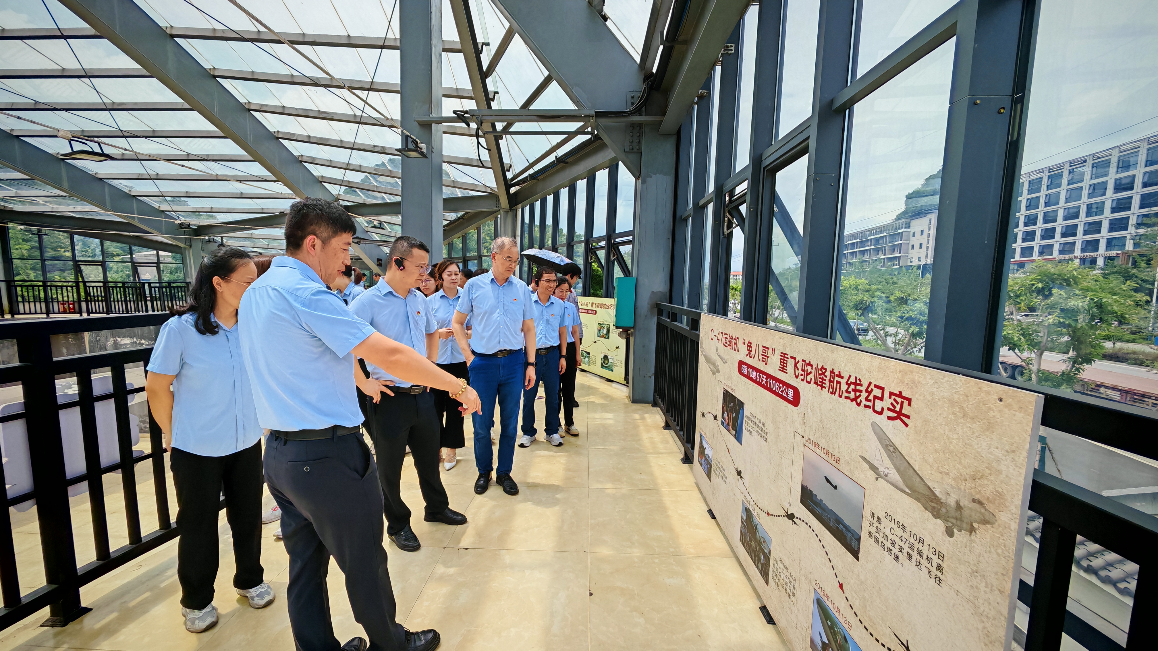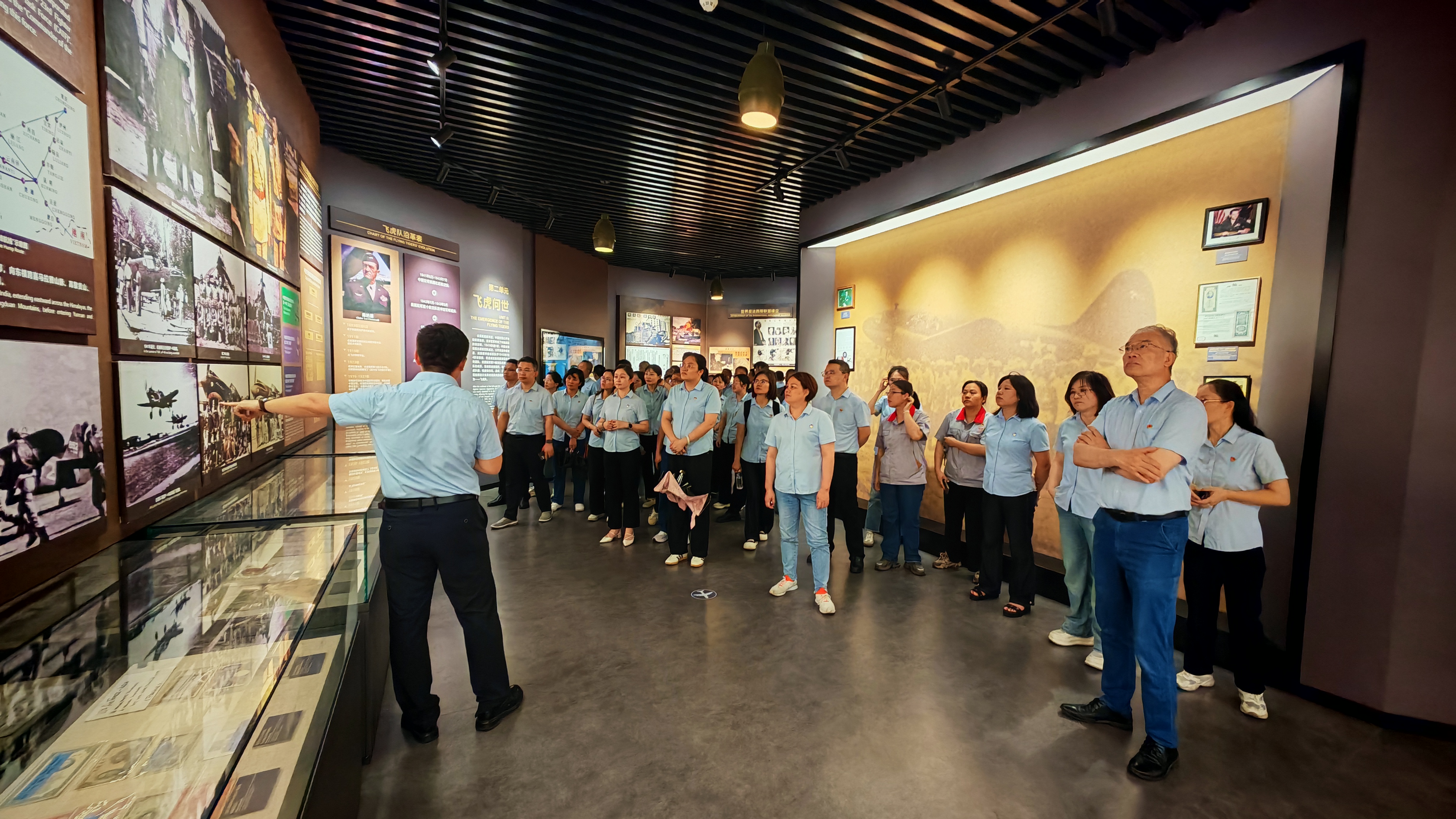 活動中,黨員們懷著崇敬的心情,認(rèn)真觀摩了飛虎隊(duì)紀(jì)念館內(nèi)陳列的作戰(zhàn)遺物、歷史照片等珍貴史料,并在飛機(jī)館瞻仰了曾翱翔于抗戰(zhàn)烽火的C-47運(yùn)輸機(jī)。一件件實(shí)物、一幅幅影像,無聲訴說著那段血與火的歲月,讓同志們身臨其境地感受到飛虎隊(duì)將士們臨危不懼、視死如歸、勇往直前的英雄氣概。