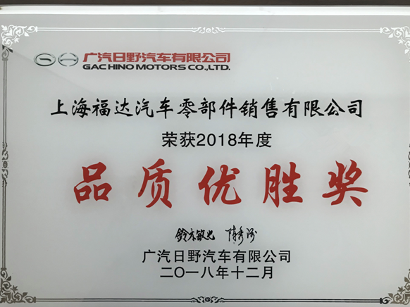 近日廣汽日野汽車有限公司召開供應(yīng)商年度會(huì)議,會(huì)上福達(dá)股份產(chǎn)品榮獲了廣汽日野2018年度“品質(zhì)優(yōu)勝獎(jiǎng)”。